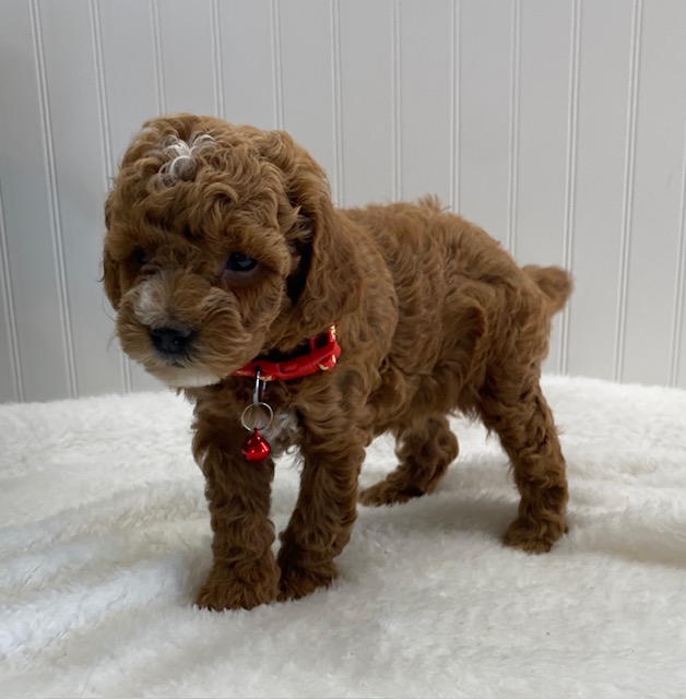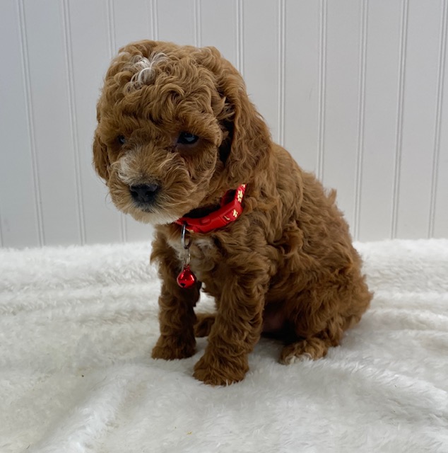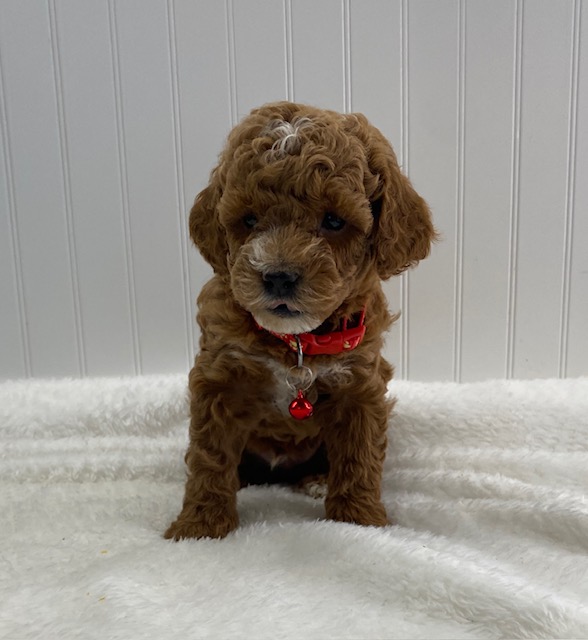 Leo is the embodiment of joy in a tiny, fluffy package. With his rich red coat and sparkling eyes, he radiates a magnetic energy that draws smiles from everyone he meets. This little adventurer has a natural curiosity, exploring every corner with playful enthusiasm. Leo’s silliness is irresistible—one moment he’s chasing his tail, the next he’s inventing a new game that keeps you laughing. He thrives on attention and loves to perform his little antics just to see you smile. Beyond his playful side, Leo is incredibly affectionate. He enjoys curling up beside you after a long day, offering quiet companionship that soothes the soul. Social by nature, he easily makes friends with other pets and adores being the center of attention during playtime. His energy is infectious, and his joyful spirit has a way of transforming even the dullest moments into celebrations. With Leo around, your days will be filled with laughter, warmth, and endless love. He’s not just a puppy; he’s a daily reminder of the simple joys life has to offer. Welcoming Leo into your home means embracing a little ball of happiness that grows brighter every day.